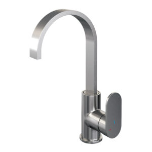 Brauer Brushed Edition wastafelmengkraan platte uitloop en kleine ronde hendelstaaf nikkel