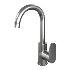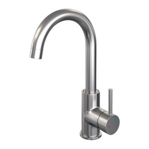 Brauer Brushed Edition wastafelmengkraan ronde uitloop en kleine ronde hendelstaaf nikkel