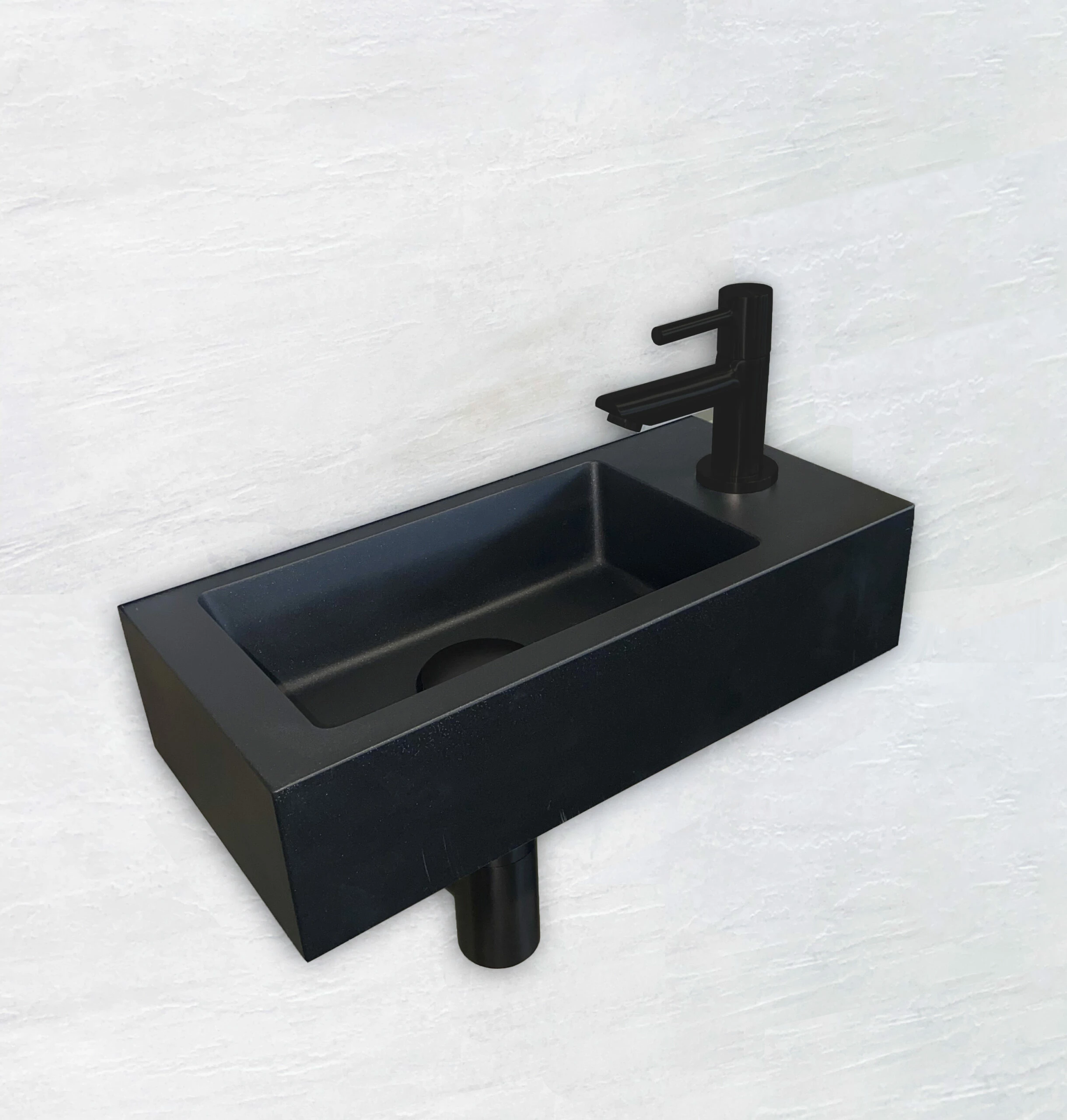One Pack Mini-Rhea rechts fontein 360x180x90 mat-zwart incl. Mat Zwart Fonteinkraan, Sifon en Plug